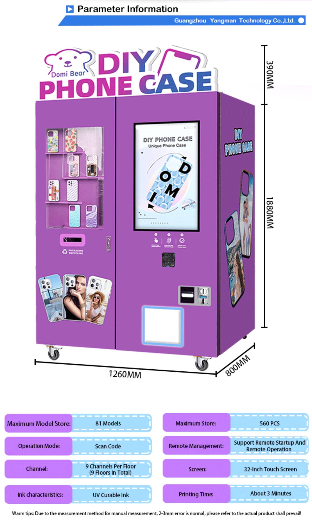 Phone Case Printing Vending Machine Super Capacity 560PCS with Maximum Model Store 81 Models
